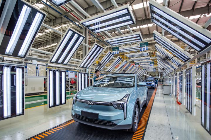 冲压、涂装、焊装、总装……走进位于桐乡经开区的哪吒汽车全生态智慧工厂,一台台车架沿空中轨道有序前行,一辆辆智能物料拣选小车将物料精准送达,从板料冲压到焊装喷涂,从中轴组装到整车调试检验,数十个工序实现自动化,几分钟就能下线一台哪吒汽车。