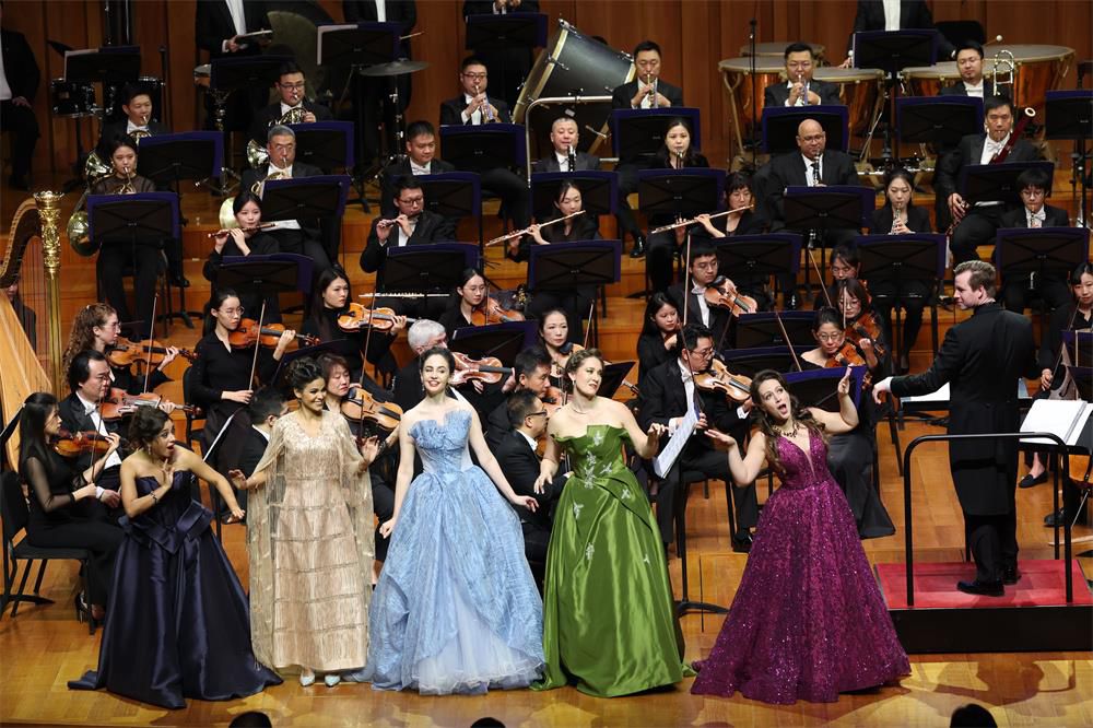 随着指挥棒轻轻抬起,美国艺术家作品《坎迪德》序曲率先上演。一首高昂的乐曲后,恬静悠长的旋律响起,是中美两国观众都耳熟能详的音乐《二泉映月》。它见证了美国费城交响乐团和中国交响乐团50年的友谊。