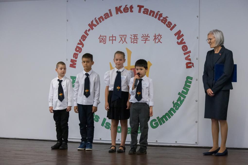 2022年9月1日,在匈牙利首都布达佩斯,学生们参加匈中双语学校新学年开学典礼。