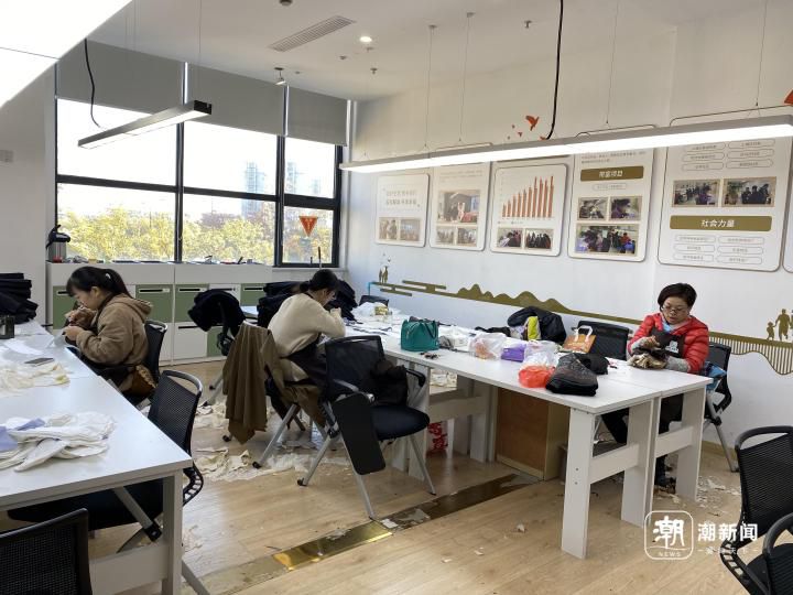 绿园弄邻里中心推出“食堂+共富工坊”,图为社区居民在工坊参加手工制作。 潮新闻记者 陈黎明 摄