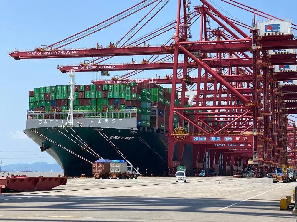△图为宁波舟山港梅山港区集装箱码头。浙江宁波舟山港前10个月集装箱吞吐量超3000万标准箱。