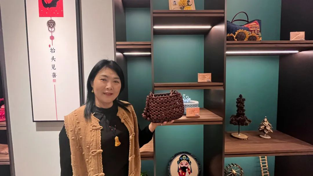 应伟文向记者展示自己制作的手工艺品(央广网记者 王春然 摄)