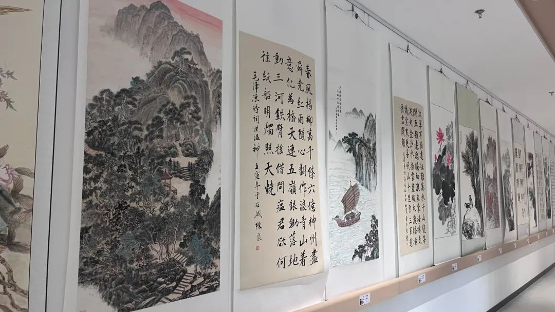 在二楼的舞蹈室,老人们正在老师的指挥下整齐划一地排练舞蹈队形,走廊的两边,还可以看到老人们的书画作品。记者了解到,梅湖中心二至三楼为颐乐学院,设有书画室、舞蹈室、钢琴室、声乐室、器乐室、四点半课堂等,可以充分满足老年人对学习、休闲、娱乐的需要。