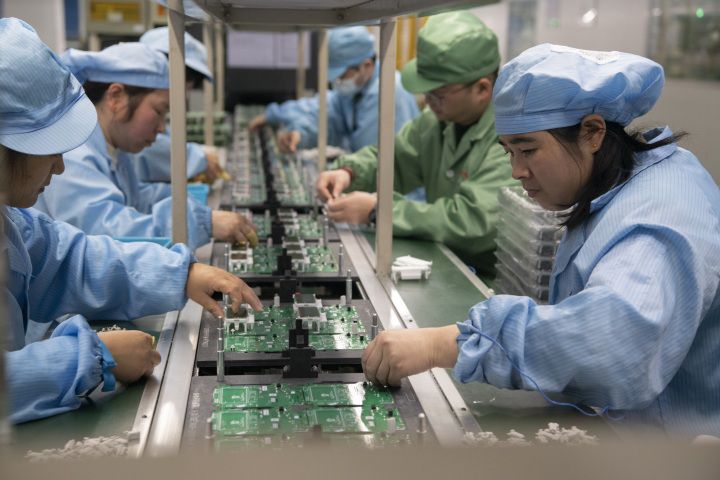 12月18日,浙江省金华市八达电子仪表有限公司数字化车间,工人们赶制电能表订单。图据新华社