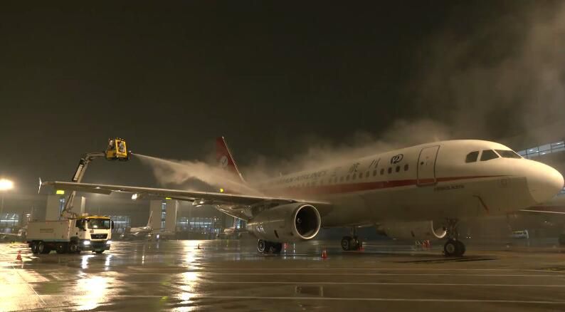 截至12月21日,在本次寒潮中,杭州萧山机场三天内已累计完成航班除冰雪作业215架次,没有一个航班因寒潮影响而取消。