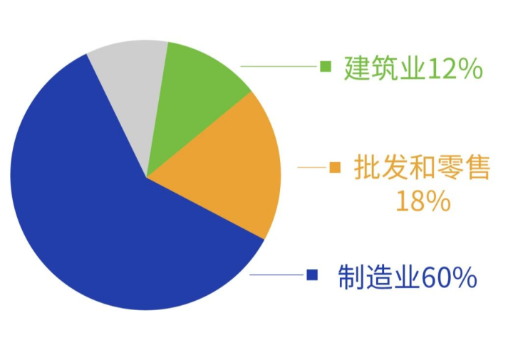 参与调研的企业覆盖16个行业,但主要集中在制造业、批发零售业和建筑业三个行业,企业数量合计占比达到89.78%。其中,制造业1118家,占比60%,细分领域中汽车制造业提升较快。