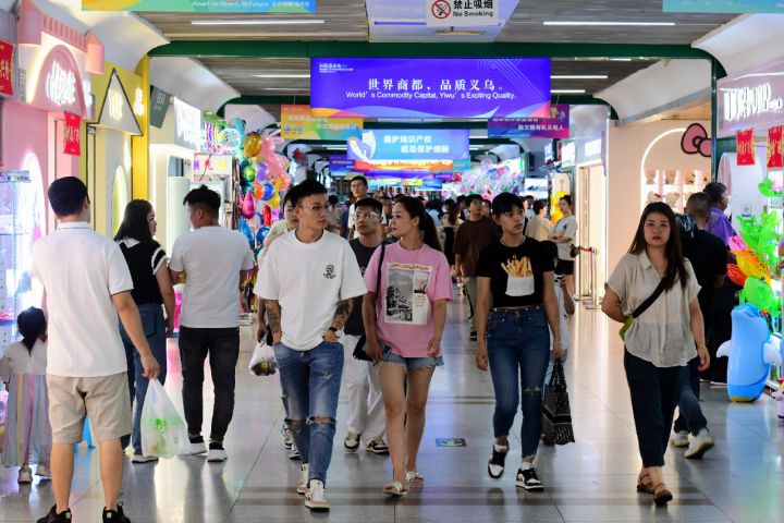 2023年8月27日,浙江省金华市义乌国际商贸城国内外客商、游客纷至沓来,文旅消费一派熙熙攘攘的繁荣景象。拍友 时补法 摄