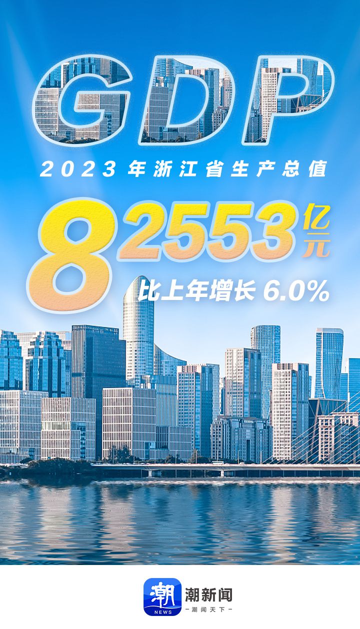 1月23日上午,浙江省统计局发布数据:2023年全省生产总值82553亿元,按不变价格计算,比上年增长6%。