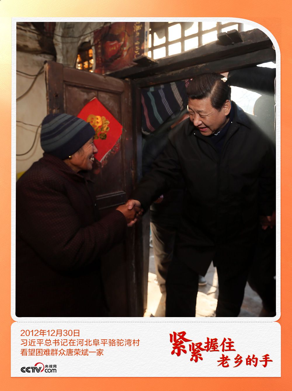 人民领袖一次次紧紧握住老乡的手,时光荏苒,初心从未改变。