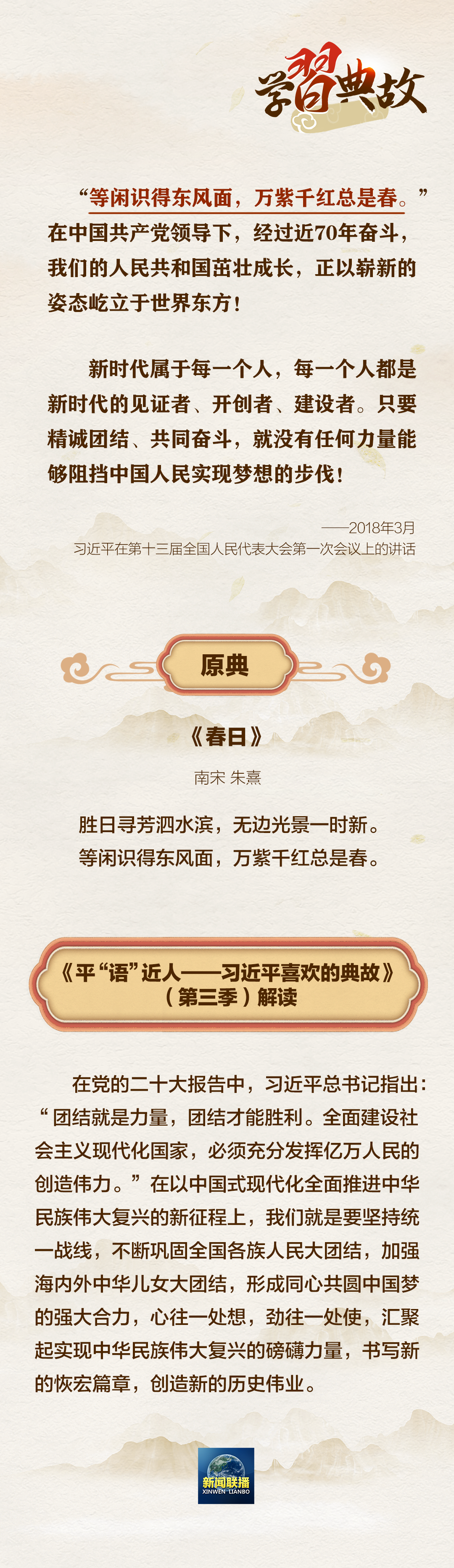2月20日,《平“语”近人——习近平喜欢的典故》(第三季)播出第四集《万紫千红总是春》。