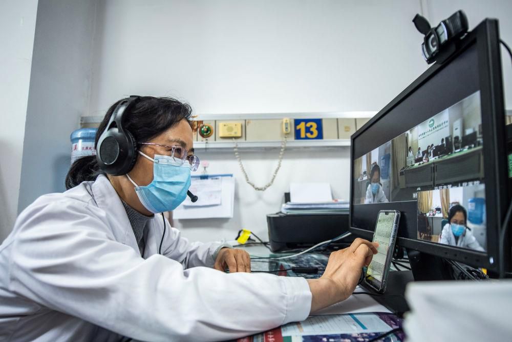 △2022年3月30日,贵州省人民医院专家在和毕节市第一人民医院医生进行远程医疗会诊。