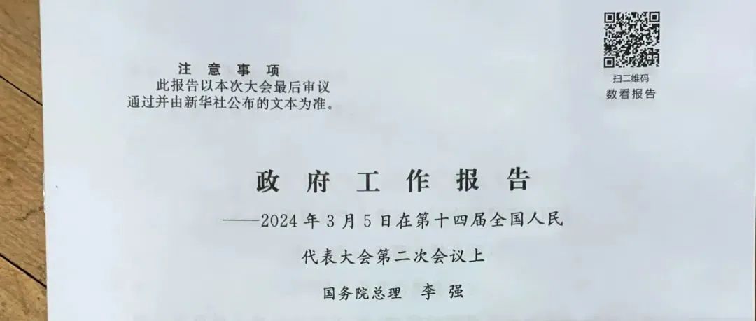 政府工作报告首页右上角,有一枚二维码,扫码可查看相关内容 图源:“中国政府网”微信公众号