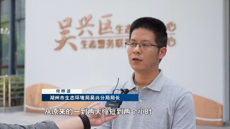 湖州市生态环境局吴兴分局局长 何晔波:部门联动时间从原来的一到两天缩短到两个小时,更加高效,信息上更加畅通。