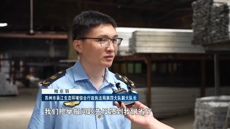 苏州市吴江生态环境综合行政执法局第四大队副大队长 陆庄羽:以往这种案件,需要两省之间相互协调。我们把举报问题先反馈到我们省厅,通过我们江苏省厅再转达给浙江省厅,然后再浙江省厅转给地方环保部门进行处理,整个流程相对烦琐。