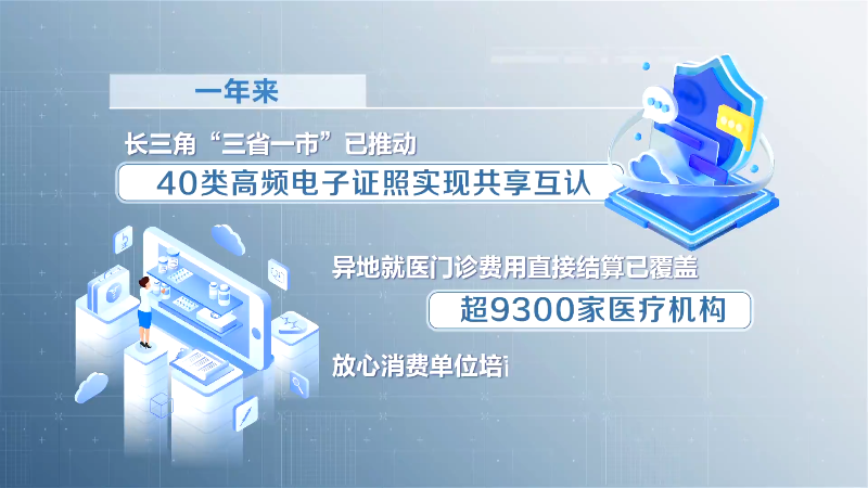 一年来,长三角“三省一市”已推动40类高频电子证照实现共享互认;异地就医门诊费用直接结算已覆盖超9300家医疗机构;放心消费单位培育超34万家。接下来,“三省一市”将制定实施新一轮“实事项目清单”,围绕卫生健康服务便民一体化、重大体育赛事共办等方面开展深化合作。