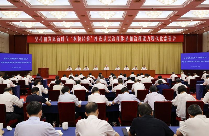坚持和发展新时代“枫桥经验” 推进基层治理体系和治理能力现代化部署会10日上午在杭州召开。省委书记王浩出席会议并讲话。他强调,要深入学习贯彻习近平总书记关于社会工作、基层治理、法治建设的重要论述精神和考察浙江重要讲话精神,忠实践行“八八战略”,坚持和发展新时代“枫桥经验”,以提升和完善“141”基层治理体系为工作载体,以凝聚服务群众、预防化解矛盾、促进社会和谐稳定为重点,以数字赋能为支撑,夯实网格化管理、精细化服务、信息化支撑的基层治理平台,用心用情用力解决群众急难愁盼问题,大力推进基层治理体系和治理能力现代化,打造基础最实、服务最暖、治理最优、秩序最好、活力最强的现代化社会,建设更高水平的平安浙江、法治浙江。
