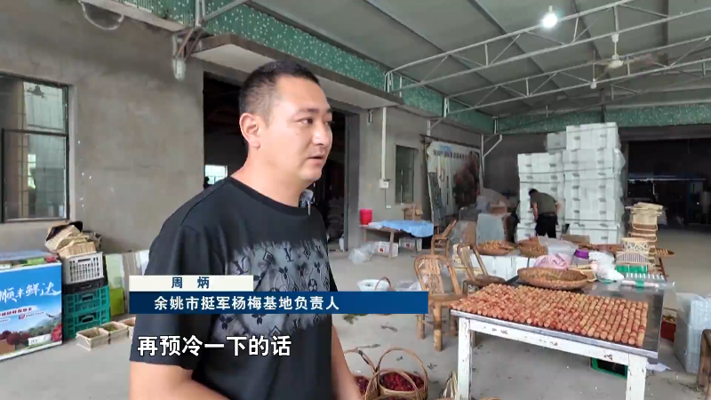 余姚市挺军杨梅基地负责人周炳说:“用这个风扇给它吹干以后,再预冷一下的话,就避免了杨梅发白的这种问题。”
