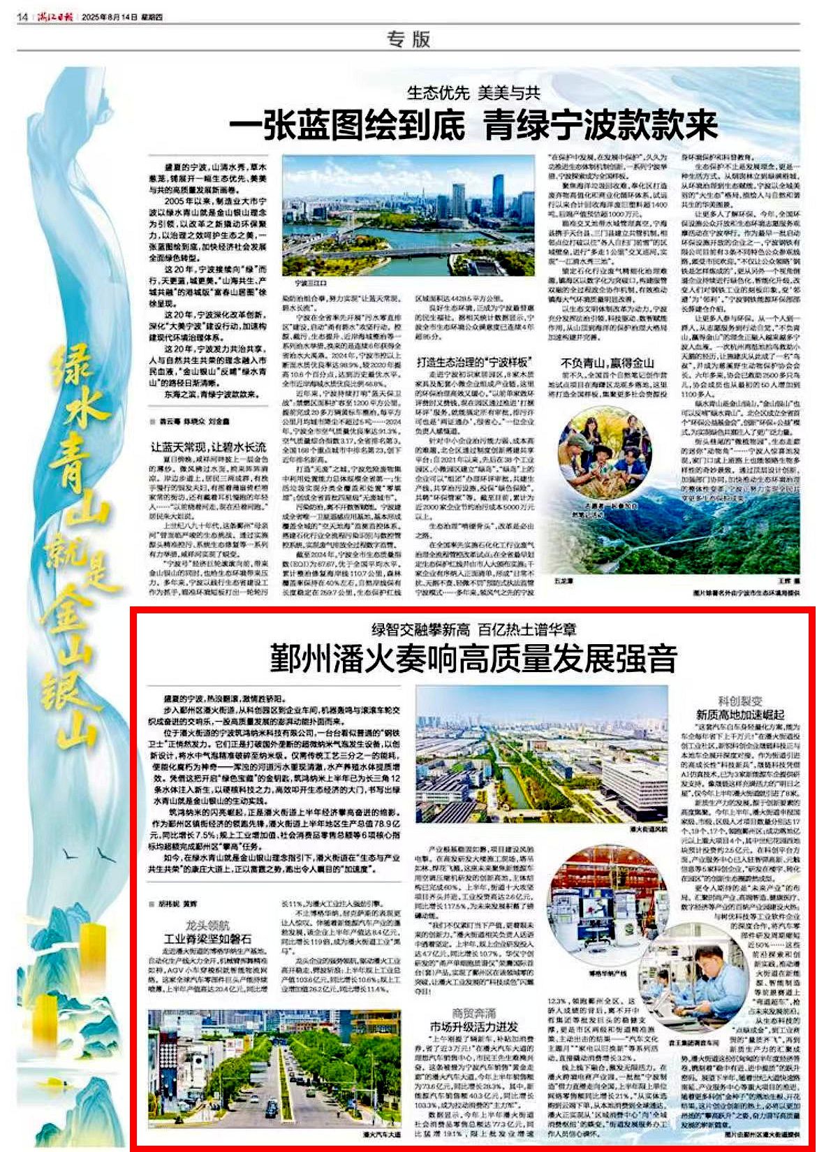 筑鸿纳米的闪亮崛起,正是潘火街道上半年经济攀高奋进的缩影。作为鄞州区镇街经济的领跑先锋,潘火街道上半年地区生产总值78.9亿元,同比增长7.5%;规上工业增加值、社会消费品零售总额等6项核心指标均超额完成鄞州区“攀高”任务。