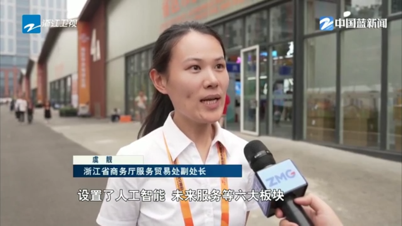 浙江省商务厅服务贸易处副处长 虞靓:今年的浙江展区特别聚焦未来这个关键词,设置了人工智能、未来服务等六大板块。浙江也是发挥数字经济的这个优势,用人工智能技术来赋能服务贸易和数字贸易高质量发展。