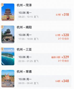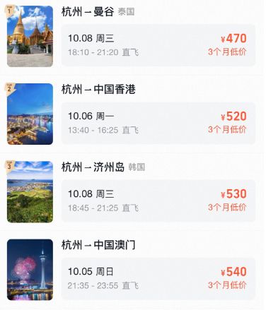 如果你只能在国庆出行,不妨选在10月5日以后出行,不管是国内游还是出境游,都能选到价格不错的机票。