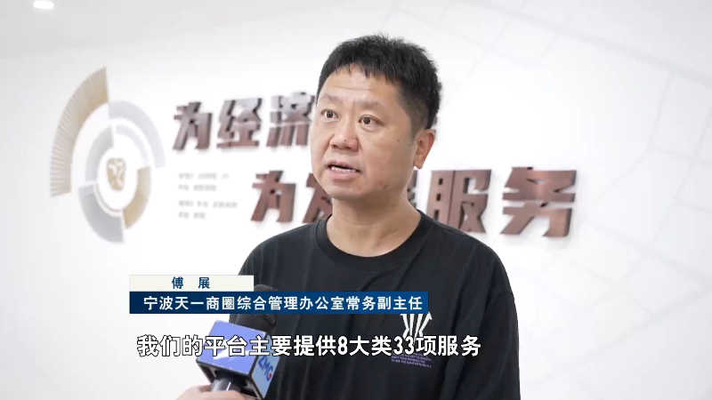 宁波天一商圈综合管理办公室常务副主任 傅展:我们的平台主要提供8大类33项服务,包括了相关手续办理、市场供需对接、首店护航支持、政策落地服务等方面。
