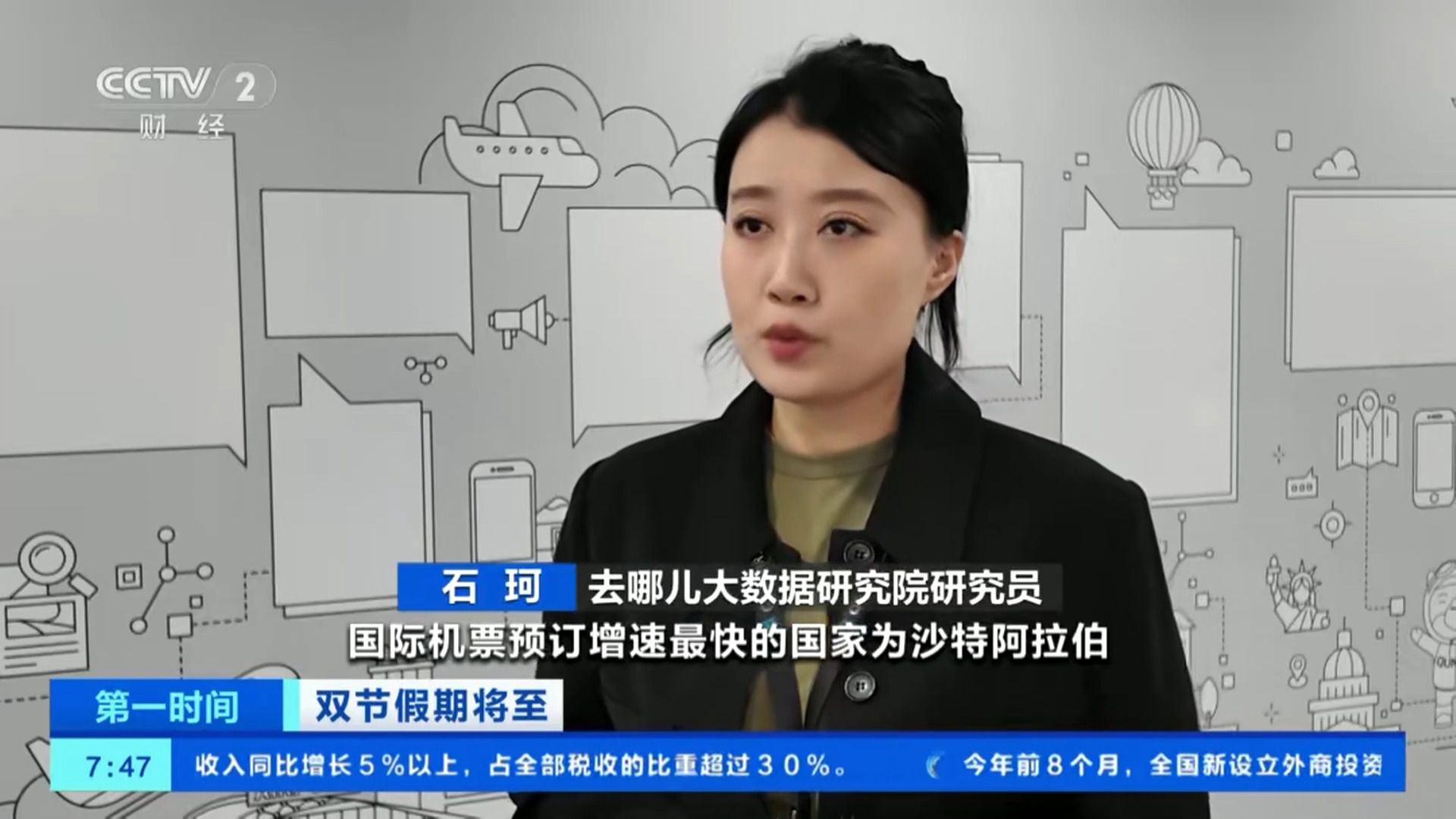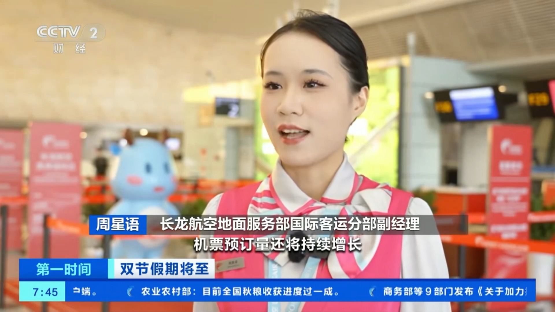 长龙航空地面服务部国际客运分部副经理 周星语:随着假期的临近,机票预订量还将持续增长,尤其是一些热门城市和旅游目的地的机票可能会更加紧俏。
