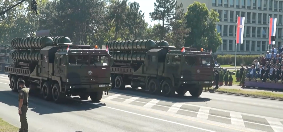 此次阅兵式在塞尔维亚宫举行,塞尔维亚总统武契奇、总理马楚特和国民议会议长布尔纳比奇,以及多国政要、军事代表和驻塞使节等出席阅兵式。