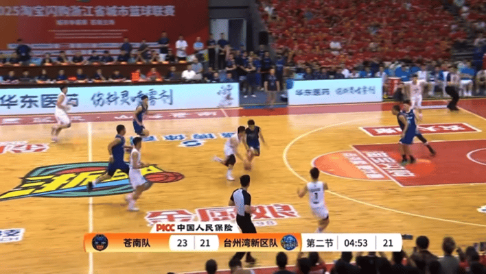 随着双方攻防节奏加快,你来我往间比分交替上升,苍南队手感滚烫持续施压,将分差逐渐拉大。台州湾新区奋力追分却难阻颓势,本节战罢,苍南队已领先19分。