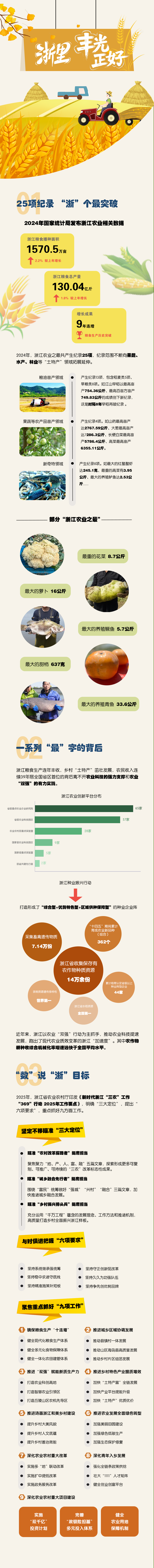 金秋送爽,硕果飘香。在第八个 “中国农民丰收节” 到来之际,让我们透过一组组亮眼数据,领略浙江近年来农业农村发展的新成果,见证乡村全面振兴的新图景。从粮食产量的稳步攀升,到特色产业的蓬勃发展;从农业创新平台的持续扩容,到农民收入的节节攀升,每一个数字都是浙江乡村丰收新图景的生动注脚。