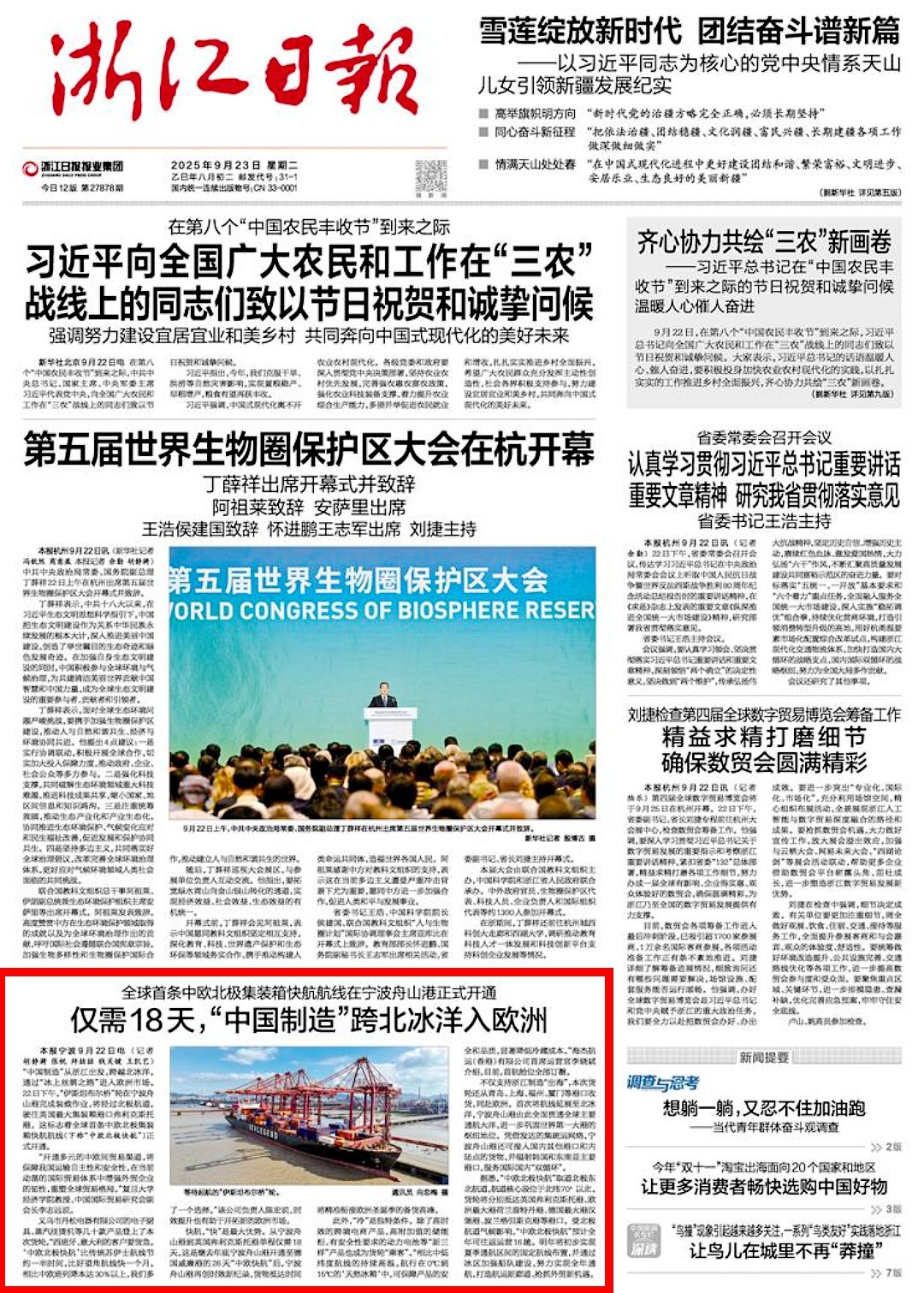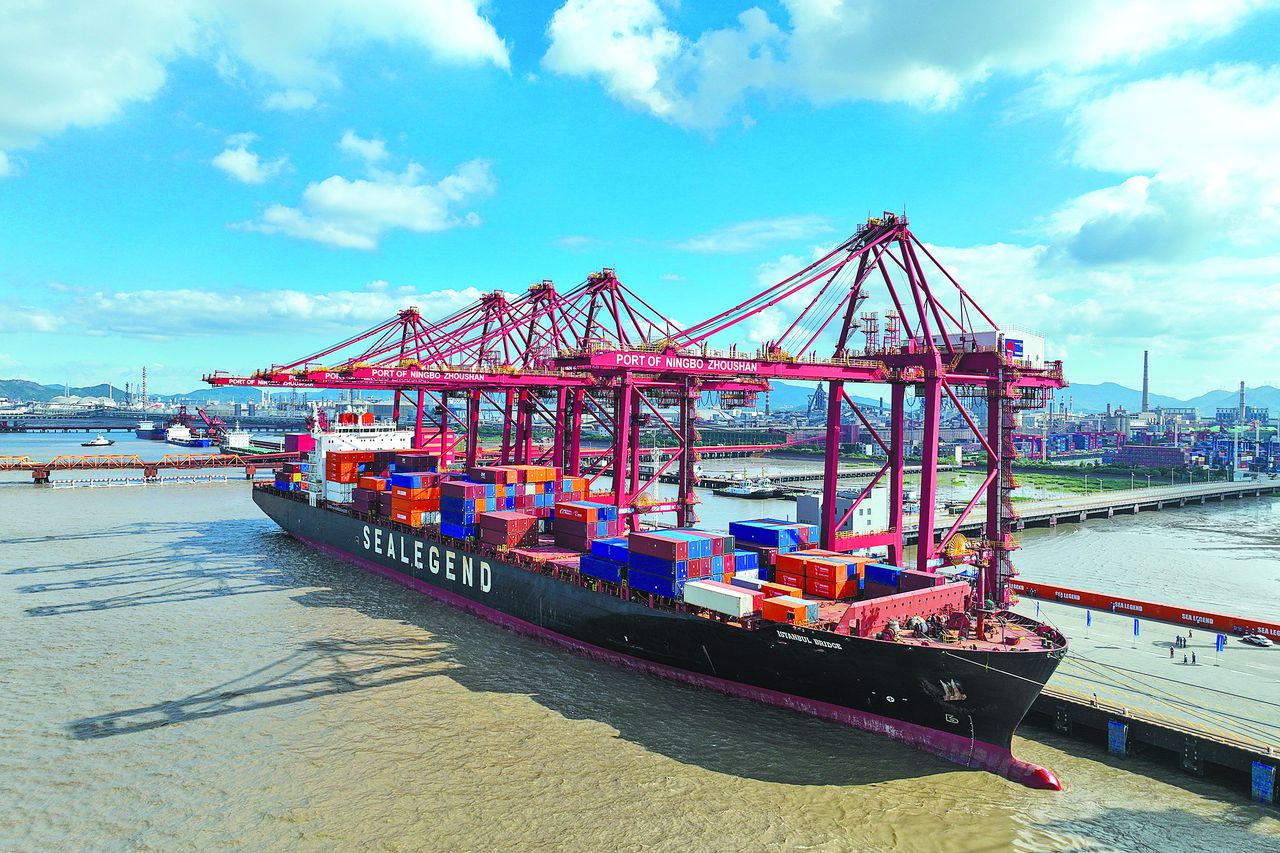 不仅支持浙江制造“出海”,本次货轮还从青岛、上海、福州、厦门等港口收货,同赴欧洲。首次将航线延展至北冰洋,宁波舟山港由此全面贯通全球主要通航大洋,进一步巩固世界第一大港的枢纽地位。凭借发达的集疏运网络,宁波舟山港还可接入国内其他港口和内陆点的货物,并辐射韩国和东南亚主要港口,服务国际国内“双循环”。