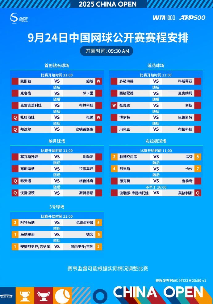 北京时间9月22日下午,中国网球公开赛女单正赛抽签揭晓,郑钦文作为7号种子享受首轮轮空待遇,次轮将对阵王雅繁和拉门斯之间的胜者。31号种子王欣瑜同样首轮轮空。