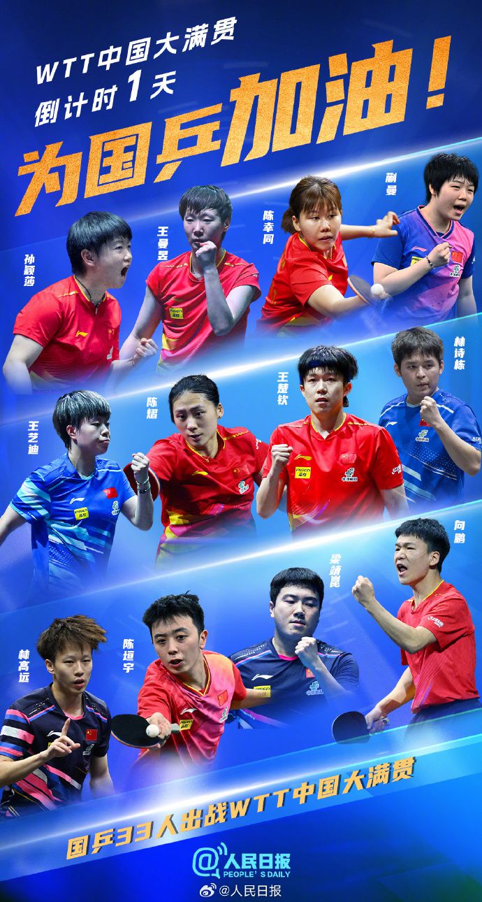 9月25日至10月5日,WTT中国大满贯将在北京首钢园举行。孙颖莎、王曼昱、王楚钦、林诗栋等运动员将出战。共同期待,为中国运动员加油!