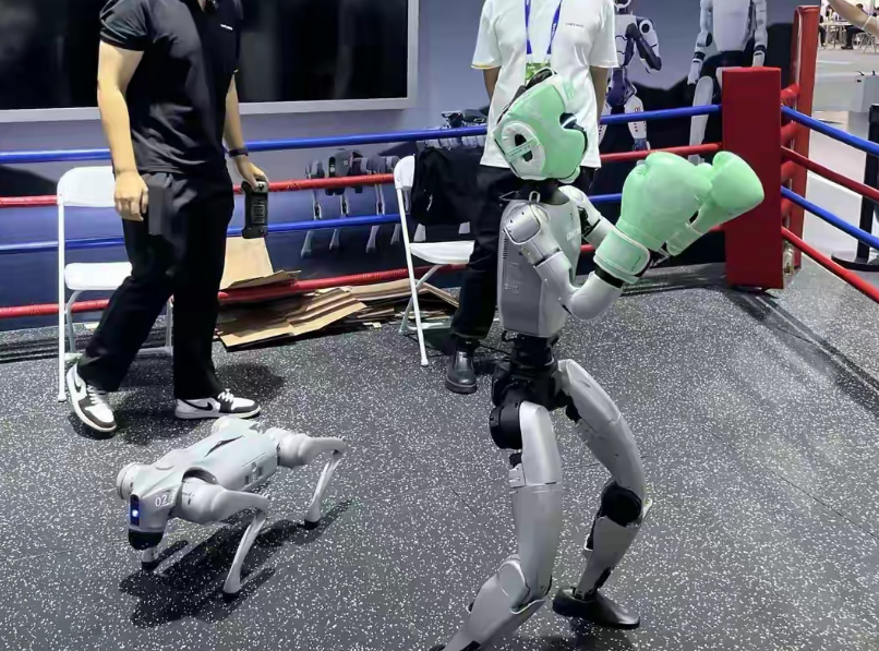 前沿应用馆里,宇树科技的机器狗展现出强大的环境适应力——四足形态下丝滑穿梭跑道,遇高台阶即刻变身两足模式,轻松攀爬跳跃,其动作流畅性较往年显著提升;一旁的人形机器人则能完成手劈木板、精准抓取等动作,已在一汽红旗工厂承担搬运、质检等工作,让工人从“扛箱子”升级为“看屏幕”。