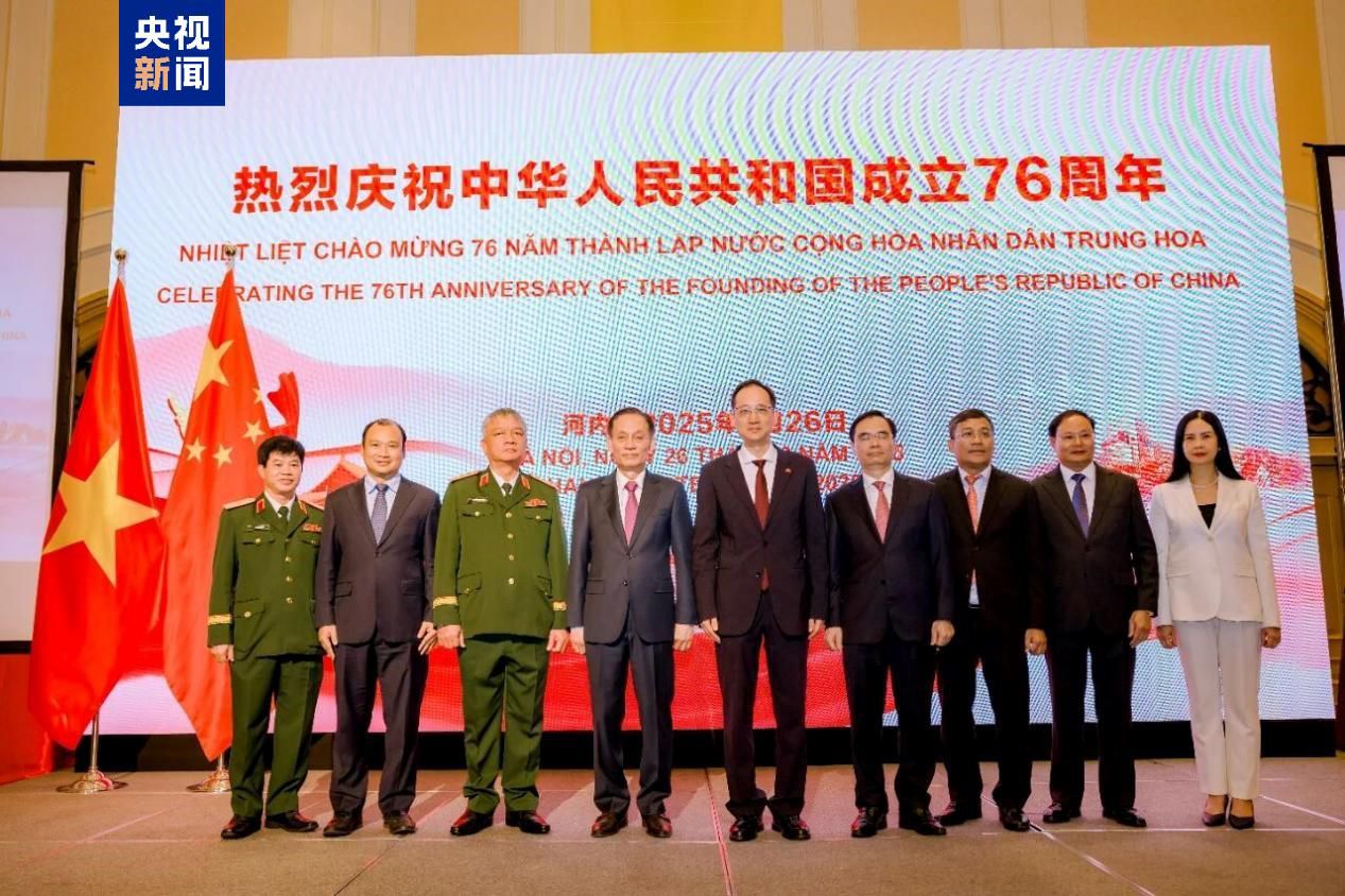 招待会上气氛融洽热烈,嘉宾们盛赞新中国76年来的发展成就,并纷纷表示将继续推动中越友好与务实合作,进一步增进两国人民之间的理解与情谊。