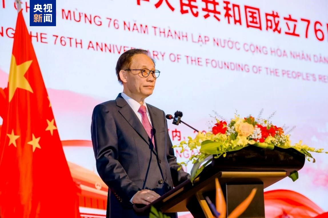 王群临时代办在致辞中回顾新中国成立76年来走过的光辉历程,强调中国始终是世界经济增长的强大引擎、共享发展机遇的重要平台、维护国际秩序的坚定力量,自我革命是中国共产党带领人民取得伟大胜利的成功密码,表示愿同越方携手构建具有战略意义的命运共同体,为两国带来切实利益。