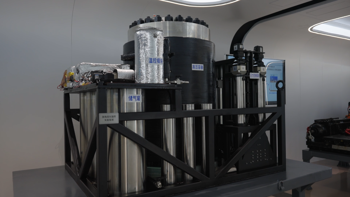 现场,记者见到了这个一米多高的“小装置”——深海高压温控实验装置,是世界首创的深海模拟器。