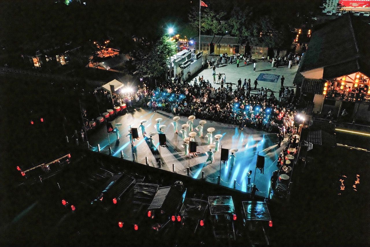 村民告诉记者,这里曾经是村里闲置的“虞舜会堂”,去年8月完成改造后大变样,能吃能玩能逛。每周六晚,来自绍兴各地的草根艺人登上村内水乡大舞台一展才艺,舞剑、古筝表演等节目轮番上演。这个夜间新地标,今年已吸引超过5万游客慕名而来。
