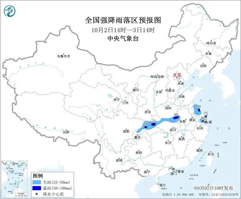 预计今天,四川东北部、重庆北部、陕西东南部、湖北北部、河南南部、山东东部和南部、安徽北部、江苏北部等地将有大到暴雨,其中,江苏北部局地大暴雨(100~110毫米)。