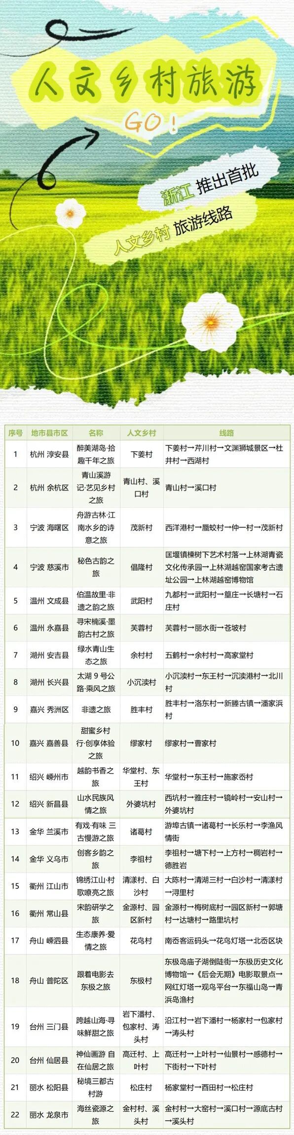 原标题:22条入选!浙江推出首批“人文乡村旅游”线路,快来体验打卡~