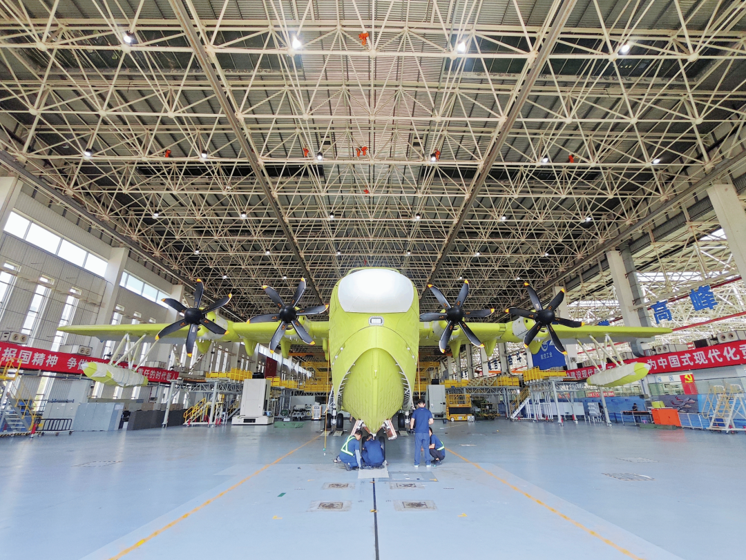 △AG600“鲲龙”飞机批产第三架机总装下线