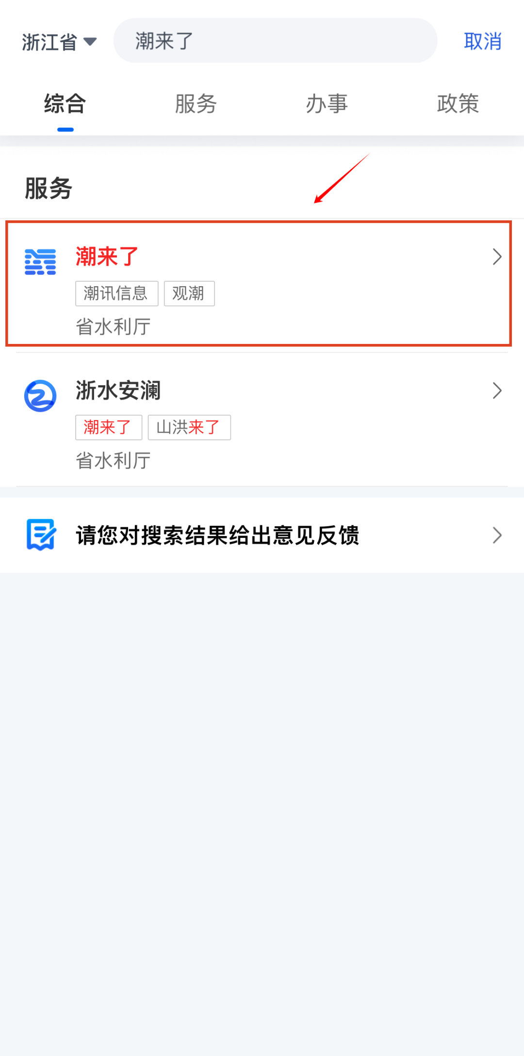 进入“浙里办”APP,首页搜索“潮来了”获取。