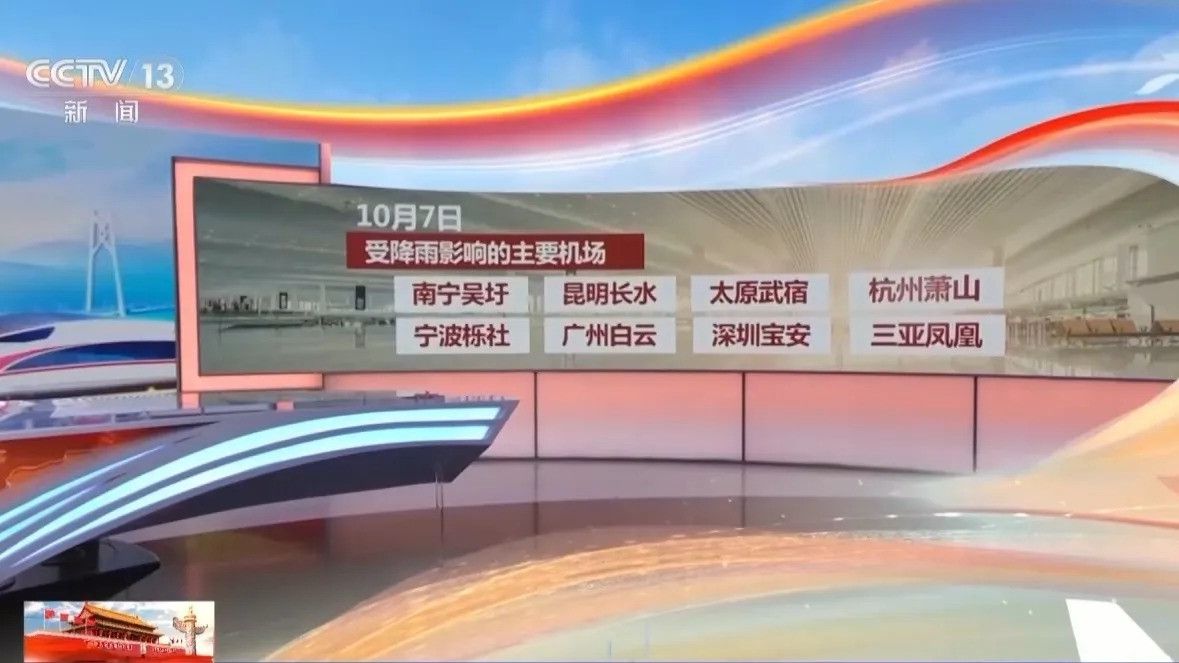 中南地区南部、华东地区中部,午后到傍晚有分散的热力性对流天气,可能伴随短时强降水、雷暴,杭州、宁波、广州、深圳、三亚等地机场会受到影响。