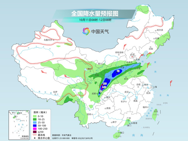 中央气象台预计,今天,四川盆地西北部、甘肃东部和南部、陕西中部和南部、山西中部、河北中部等地部分地区有大到暴雨。