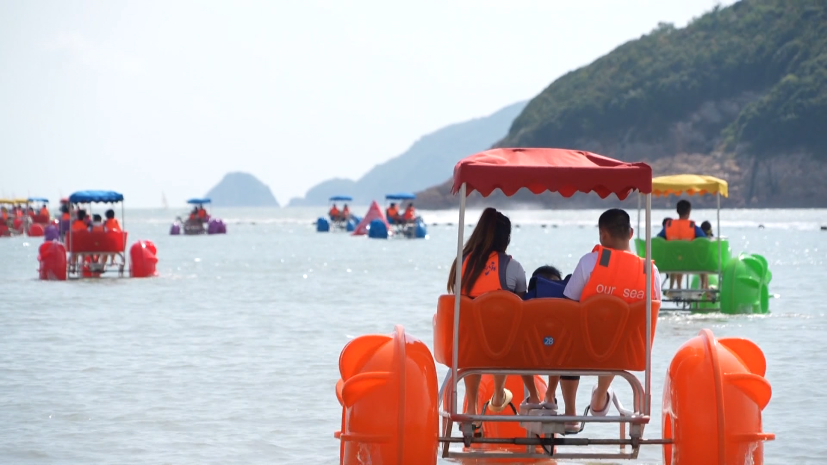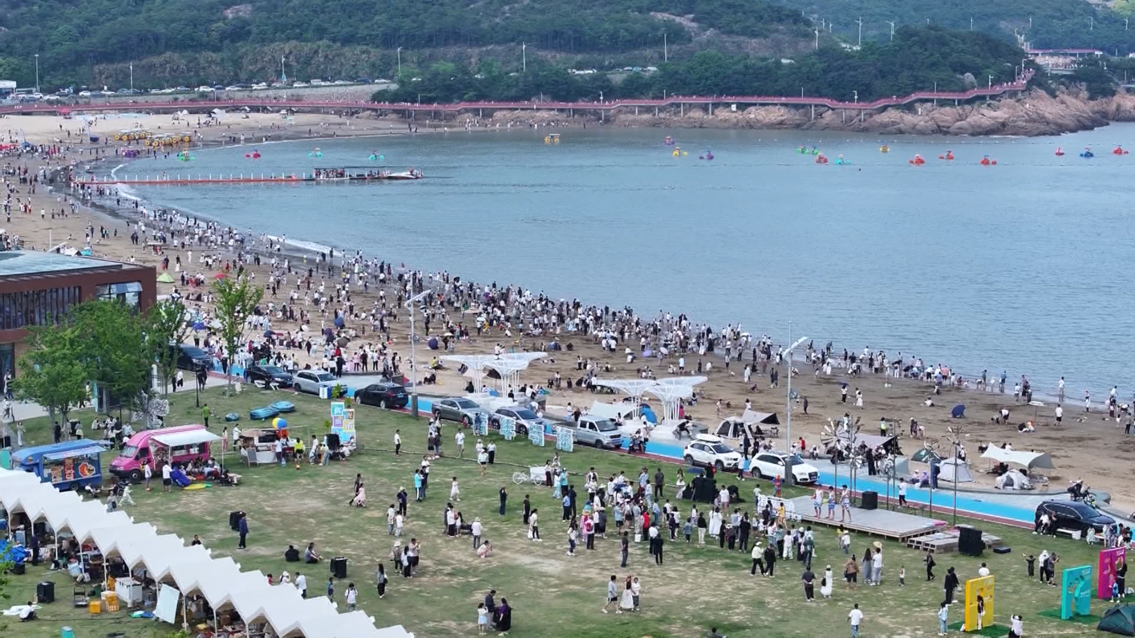 长假期间,宁波象山松兰山滨海旅游度假区游客络绎不绝,水上摩托、海上踏浪车等项目,带给游客大海的动感与活力;礁石咖啡、VR帆船体验、月光音乐会等项目,则让大家感受了一把惬意的慢生活。