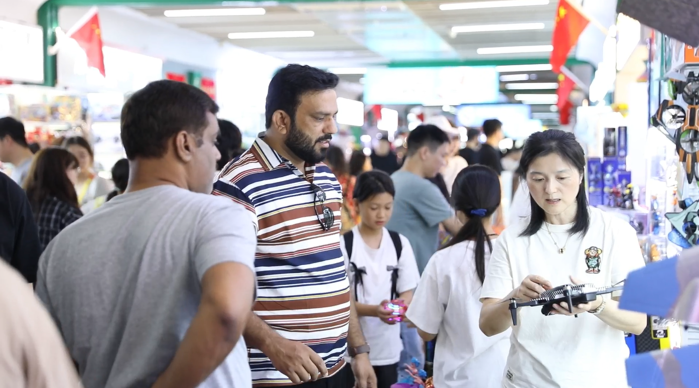 在义乌国际商贸城一区的玩具特色街区,不少外籍旅客也加入到了进货式旅游,来自巴基斯坦的穆赫辛不到一个小时,就采购了手持风扇、汽车模型等玩具,塞满了整个行李箱。“这里有很多种玩具可以选择,而且质量都非常好,我会买了带回巴基斯坦给我的孩子和亲戚朋友。”穆赫辛说。
