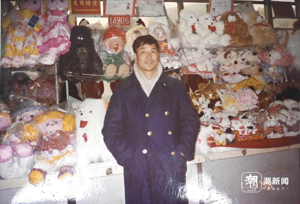 1998年,经营户何涛的外公在义乌第四代市场经营毛绒玩具生意。(该照片系共享联盟·义乌 吴峰宇 翻拍)