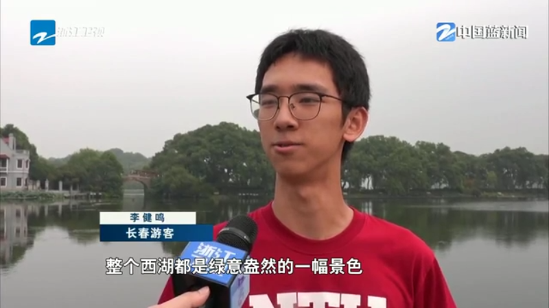 长春游客 李健鸣:整个西湖都是绿意盎然的一幅景色。