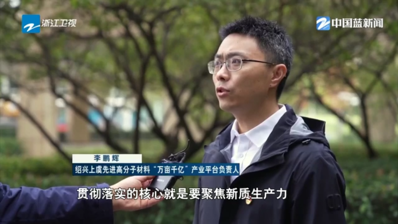绍兴上虞先进高分子材料“万亩千亿”产业平台负责人 李鹏辉:贯彻落实的核心就是要聚焦“新质生产力”,全力打通“研发—概念验证—中试—产业化”的成果转化链条,推动产业链、创新链协同发展。