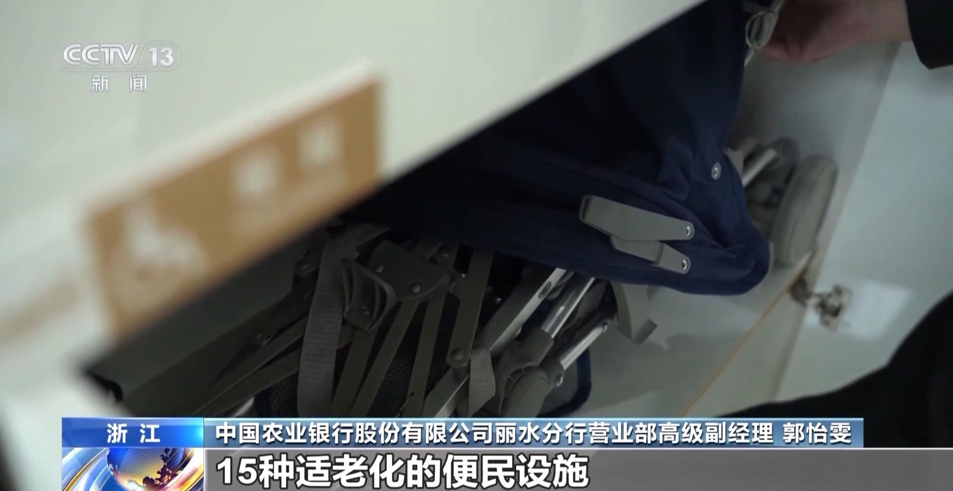 中国农业银行股份有限公司丽水分行营业部高级副经理 郭怡雯:我们网点一共配备了15种适老化的便民设施,比如震动叫号器,可以提醒老人到号办理业务。移动填单台,方便老人填写单据。