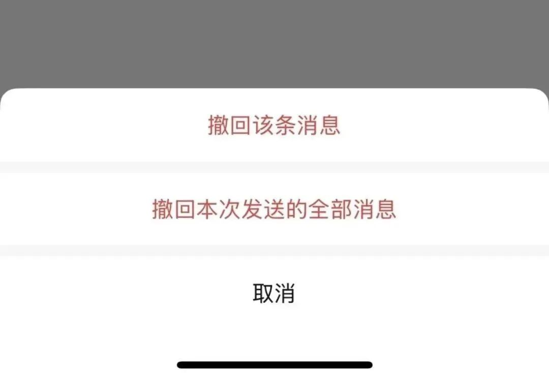 现在,微信可以一次性撤回本次发送的全部消息(包括多选转发、批量发送的图片视频和文件)。以前,一条条撤回,匆匆忙忙连滚带爬;现在,一次性撤回,从从容容游刃有余。